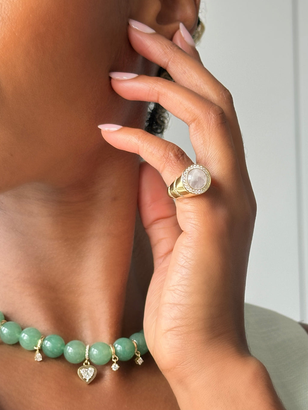 Nadine Aysoy jewellery features in the Netflix series Emily In Paris. Worn by Lily Collins as Emily Cooper, Ashley Park as Mindy Chen, and more of the cast.