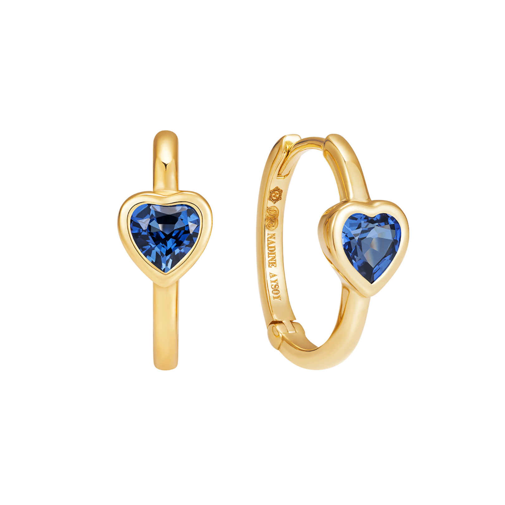 Le Cercle Blue Sapphire Heart Huggies with 18k yellow gold (3.31g) with heart shaped blue sapphire (1.29ct).
