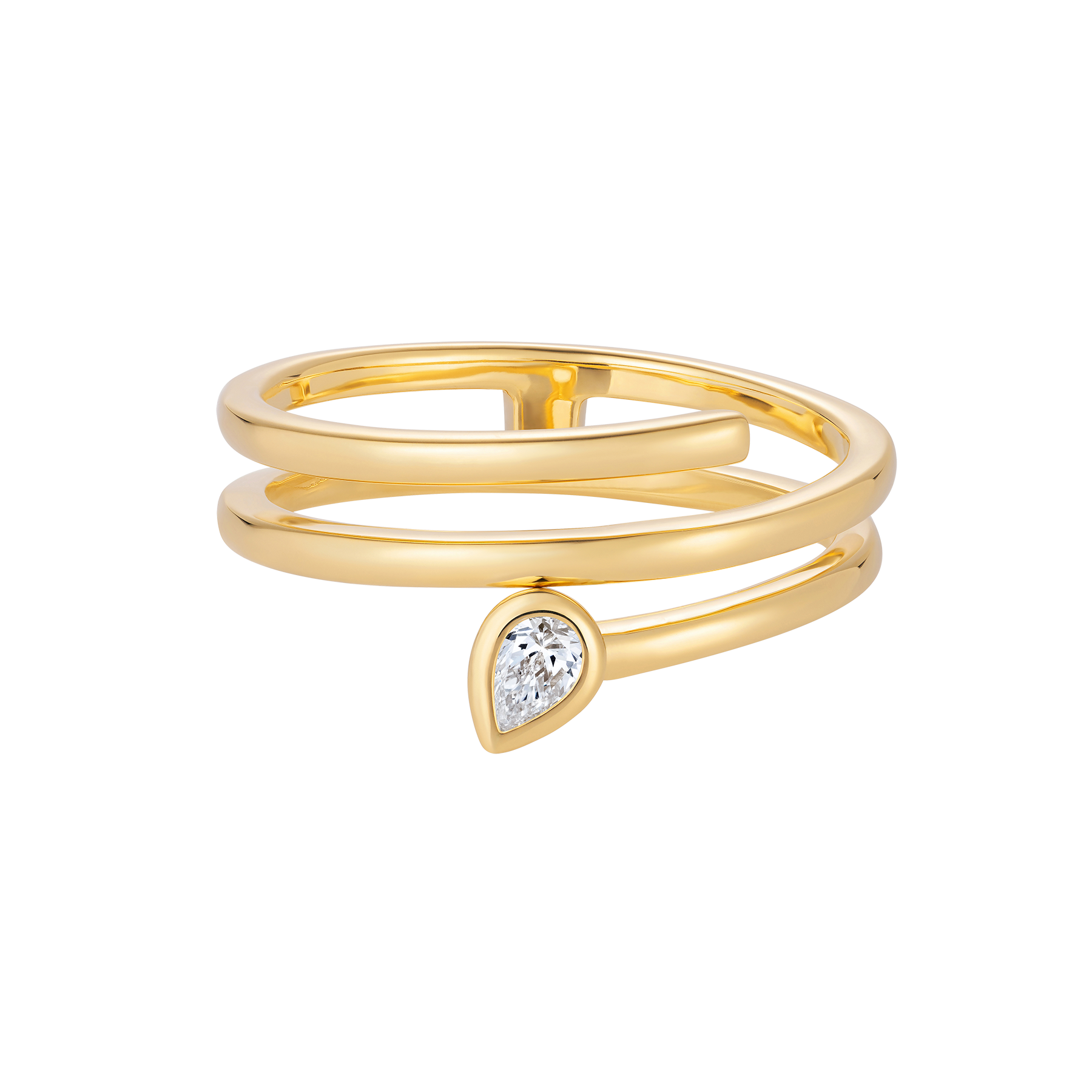 Le Cercle Diamond Pear Shaped Petite Ring in 18k yellow gold (4.27g) with pear-cut diamond (colour F, purity VVS 0.11ct).