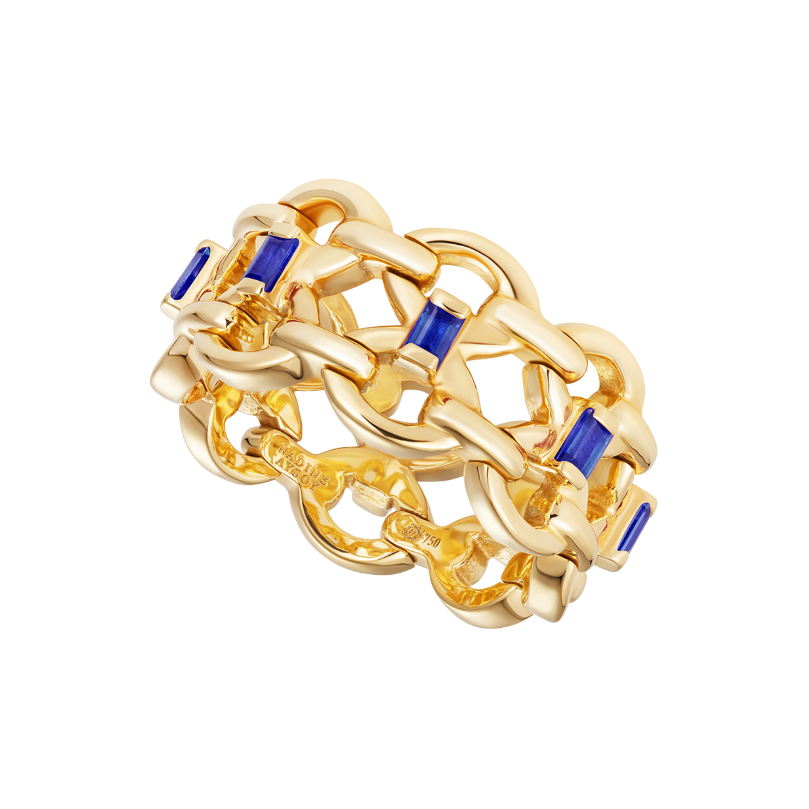 Catena Double Blue Sapphire Baguette Ring in 18k yellow gold with baguette cut blue sapphires.