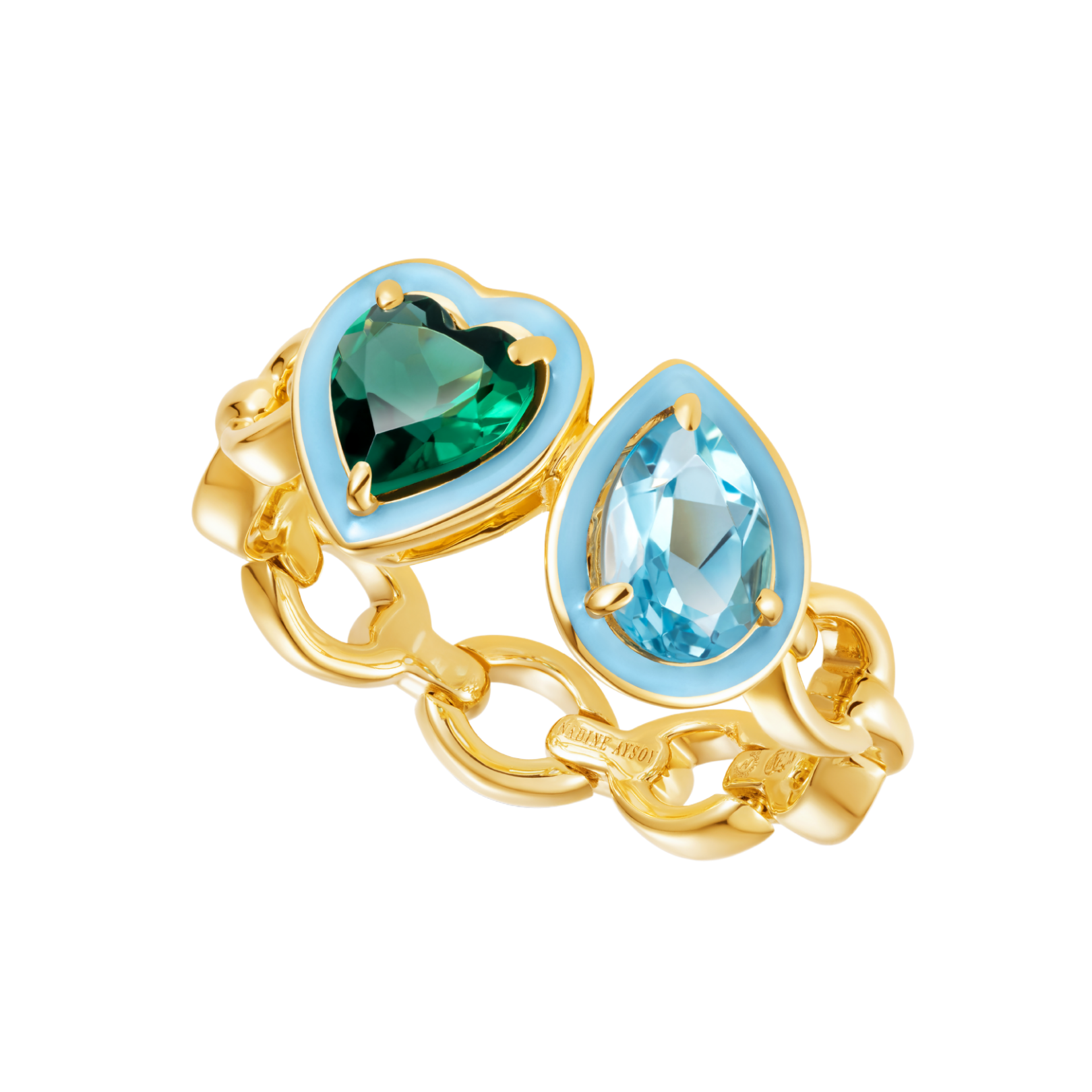 Catena Enamel Double Emerald and Blue Topaz Ring