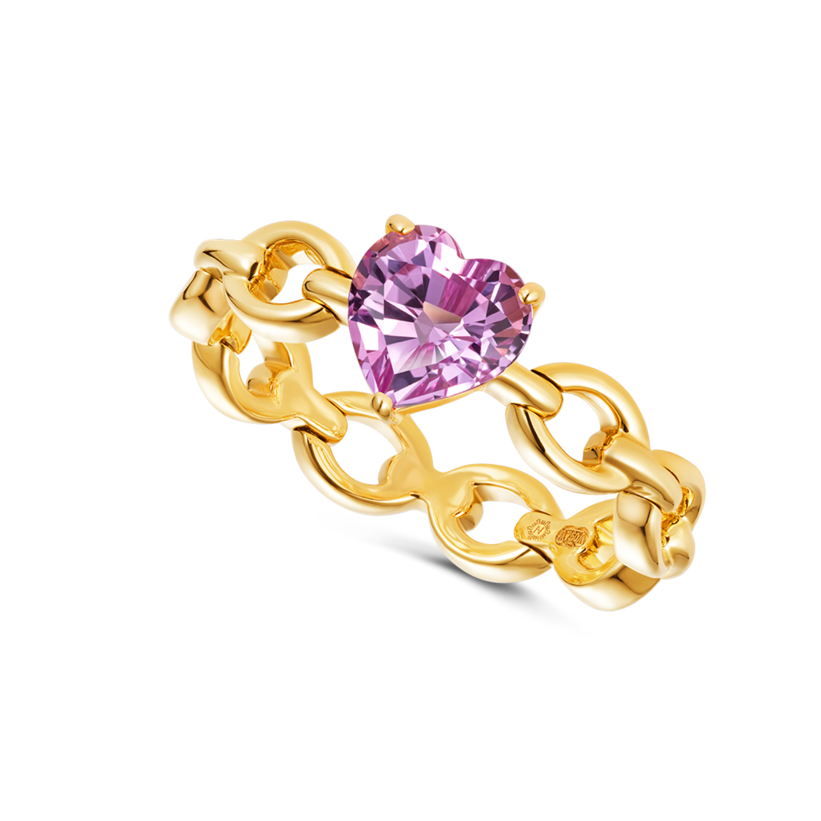 Catena Mini Heart Ring in 18k yellow gold (4.83g) with pink sapphire (1.72ct)