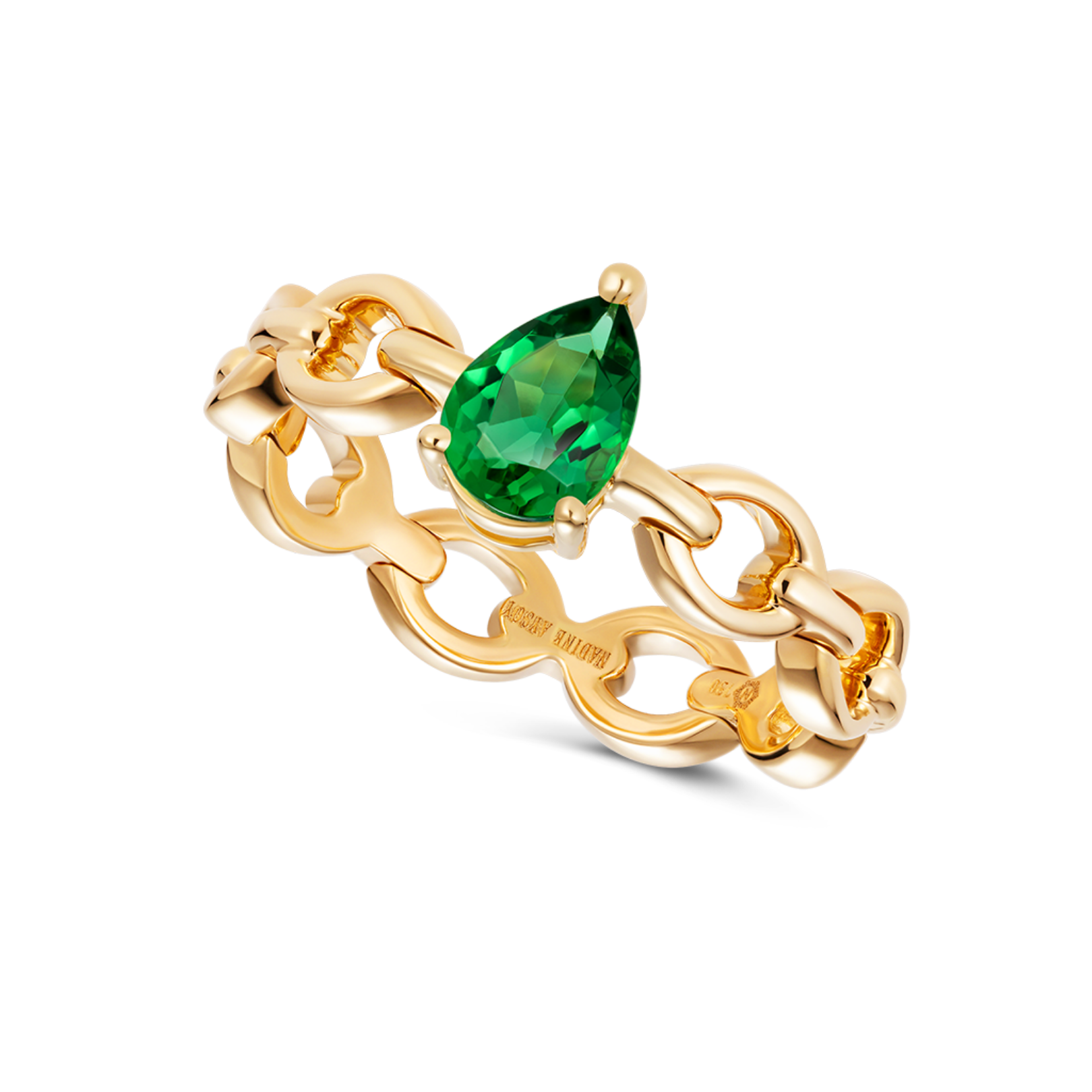 Catena Mini Pear Shaped Emerald Ring in 18kt yellow gold with a pear shaped emerald.